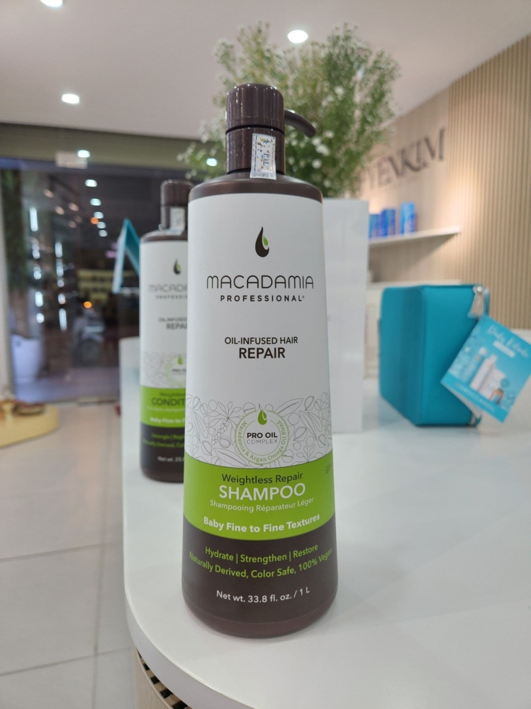 Bộ Gội Xả Tạo Phồng – MACADAMIA 1000ML Trải nghiệm cảm giác của mái tóc bồng bềnh và suôn mượt với cặp dầu gội xả Weightless Repair Shampoo & Conditioner 🥑⠀Các sản phẩm của Macadamia Weightless Repair chứa một hỗn hợp của Macadamia và Dầu Argan để thúc đẩy tăng cường phục hồi sâu cấu trúc tóc. Công thức bổ sung thêm Tinh dầu trái Bơ nhẹ và Dầu óc chó chống lão hóa mái tóc, tăng độ chắc khỏe, cải thiện độ phồng và giúp mái tóc bồng bềnh và suôn mượt.